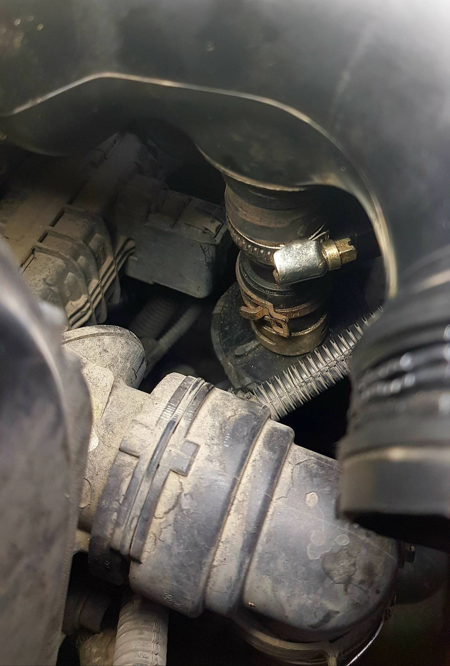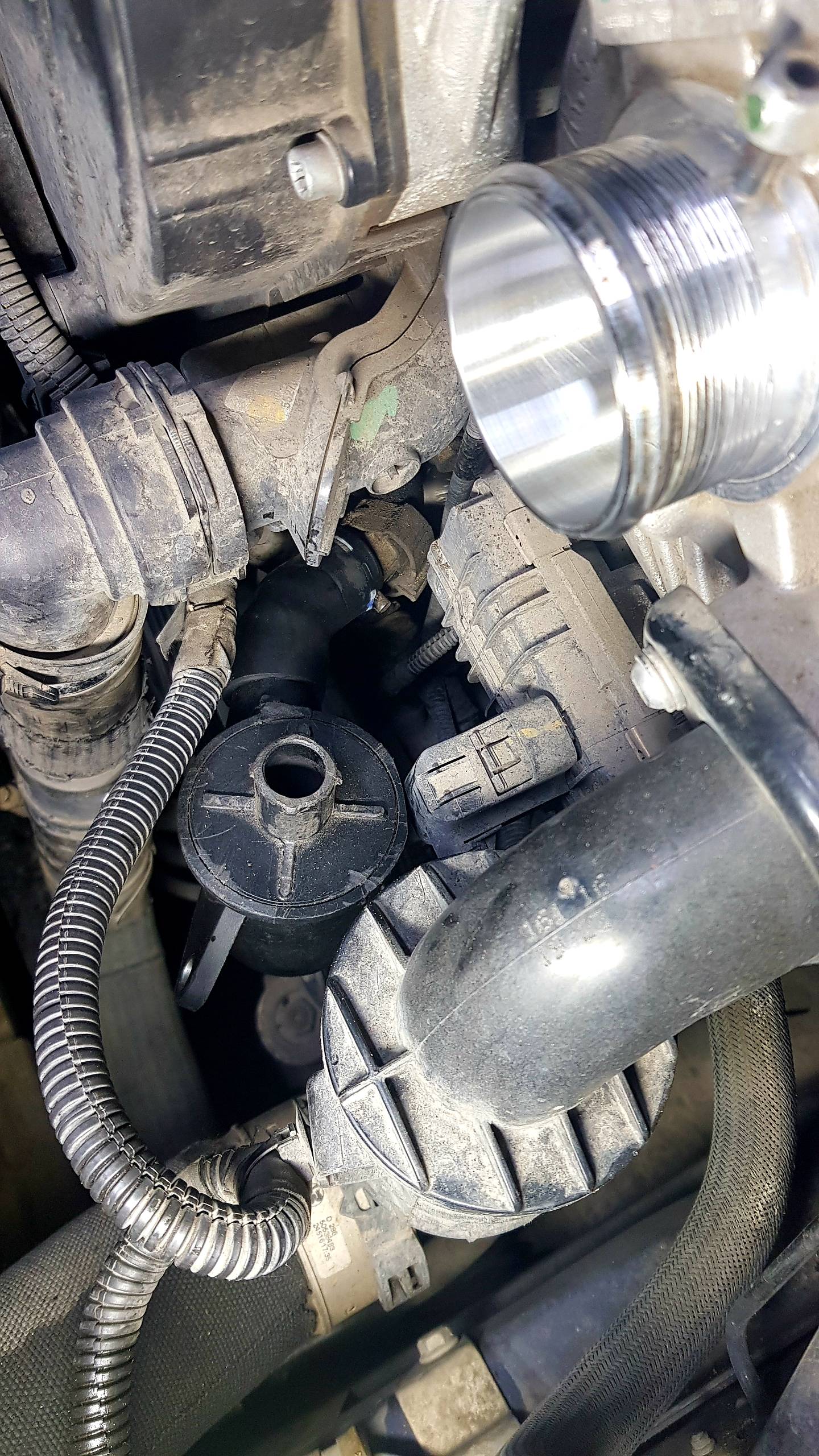 Visualizza allegato 244046,,,,Il separatore dell'olio è quasi a filo con l'ingresso della turbina, quindi è necessario un piccolo pezzo di tubo di gomma diritto e delle fascette. nel mio caso è stato aggiunto anche un riscaldatore.