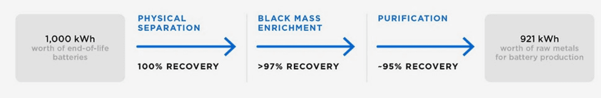 Gia ora migliaia le tonnellate di materiali riciclati internamente all'azienda e reimmessi in nuove batterie: