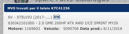 Mentre la prima VP di Stelvio MY20 è stata prodotta l'8 novembre 2018: