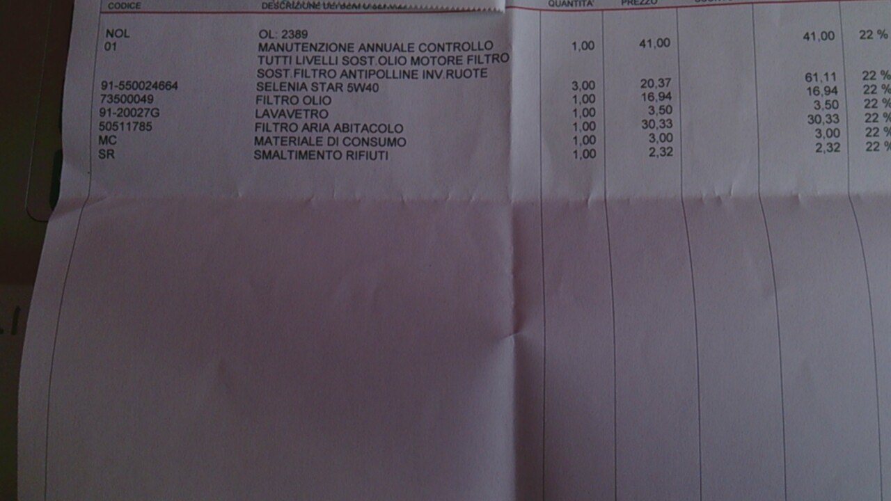 ragazzi sono appena tornato dall' officina per il tagliando dei 10000 km, devo dire che sono rimasto pienamente soddisfatto,fatto tutto sotto i miei occhi allego foto della fattura