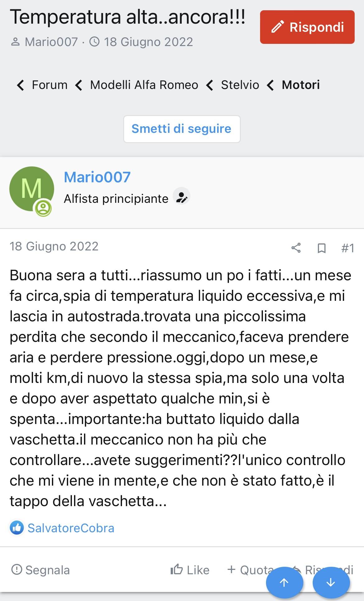Mi sembra che in questo forum ci siano persone pagate (non saprei da chi) per screditare le nuove auto AR invece che proporre soluzioni ai problemi...