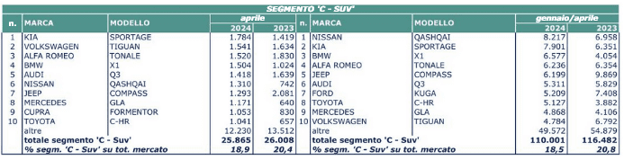 Mese di aprile : 21 pezzi in meno della Tiguan : praticamente uguali.