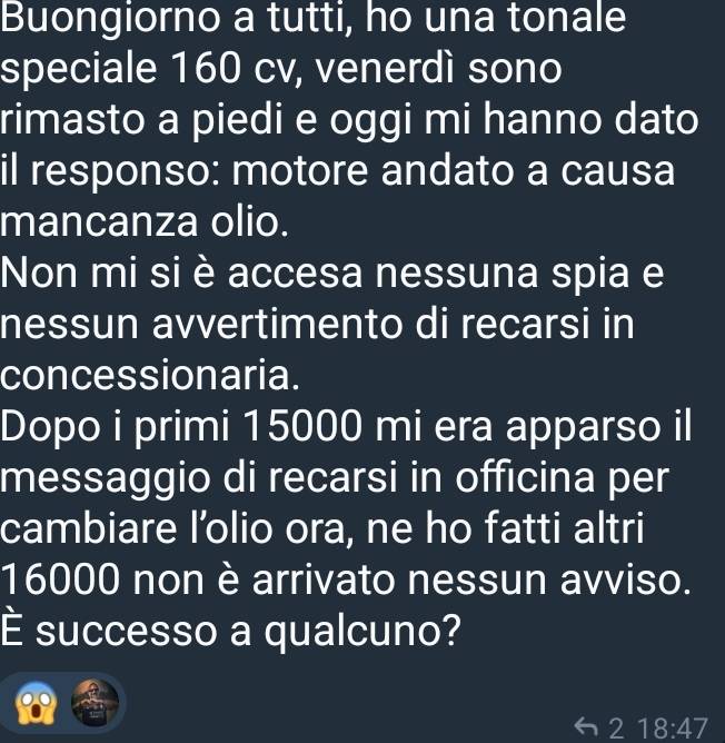 Del guasto del vecchio aimè non so nulla dato che Alfa ha impedito alla concessionaria di aprire il motore e capire, lo analizzeranno loro ma suppongo che non sapremo mai che problema avesse purtroppo, se sia stato un caso isolato, se è un difetto di alcuni motori, se sarà necessario richiamare tutte le Tonale, farò di tutto per avere info ma credo che se le terranno per loro, unica cosa che possiamo fare è raccogliere feedback da più proprietari e capire se lo stesso problema si verifica anche in altri.