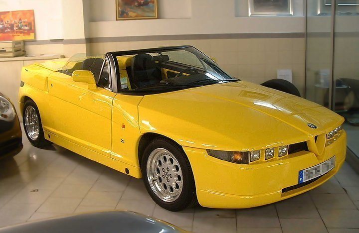 la reliquea in questione e' una creazione Alfa , disegnata da Zagato,costruita in circa 1000 esemplari(numerati) , nella versione SZ coupe', e 274 in versione roadster con capotta in tela,all'epoca costava + di 100.000.000 di lire, era disponibile in rosso con interni in pelle color biscotto, gialla, interni neri, grigia(alcuni esemplari 2 o 3)e nera con interni rossi, la meccanica e' derivazione 75 3ooo v6,aveva un dispositivo , come voglio realizzare io sulla mia 147 che permetteva di alzare ed abbassare l'auto idraulicamente, in foto e' abbassata,