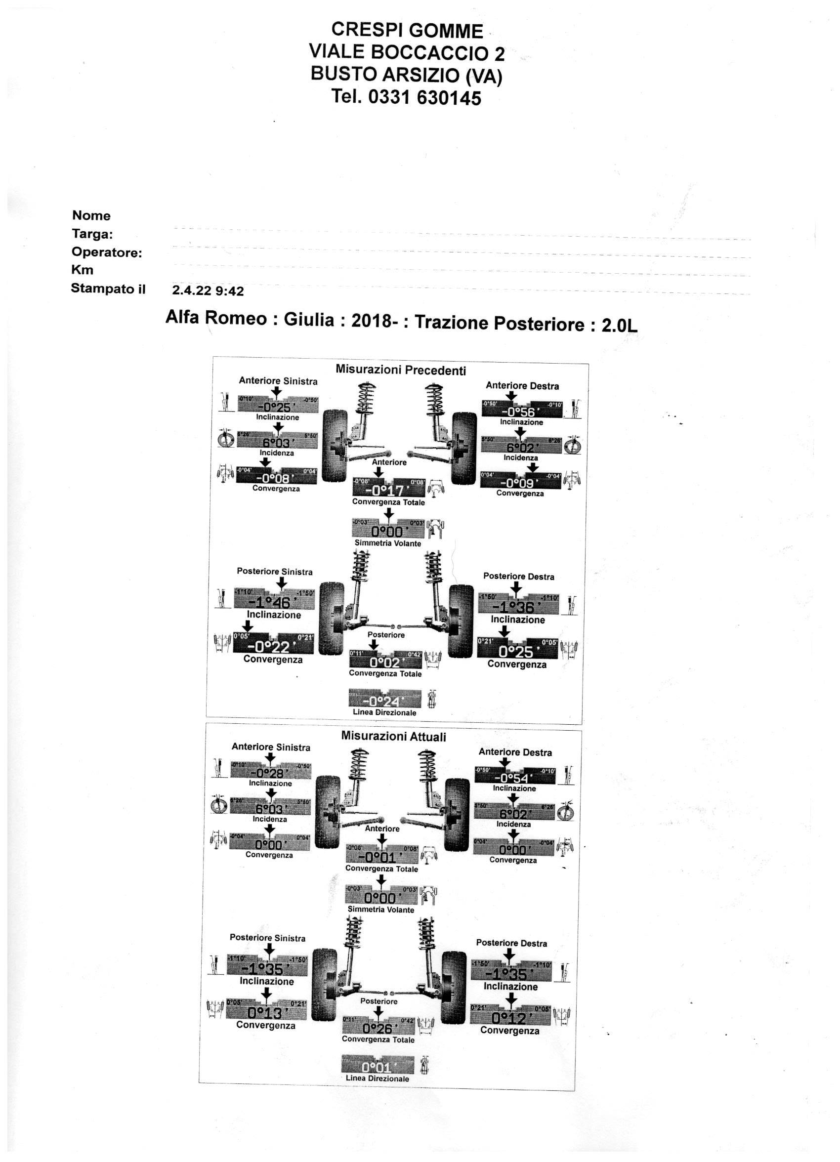 Occhio solo che questi sono i valori per le Giulia "basse", le prime serie, non so se poi con le 2018 "alte" le cose cambino...