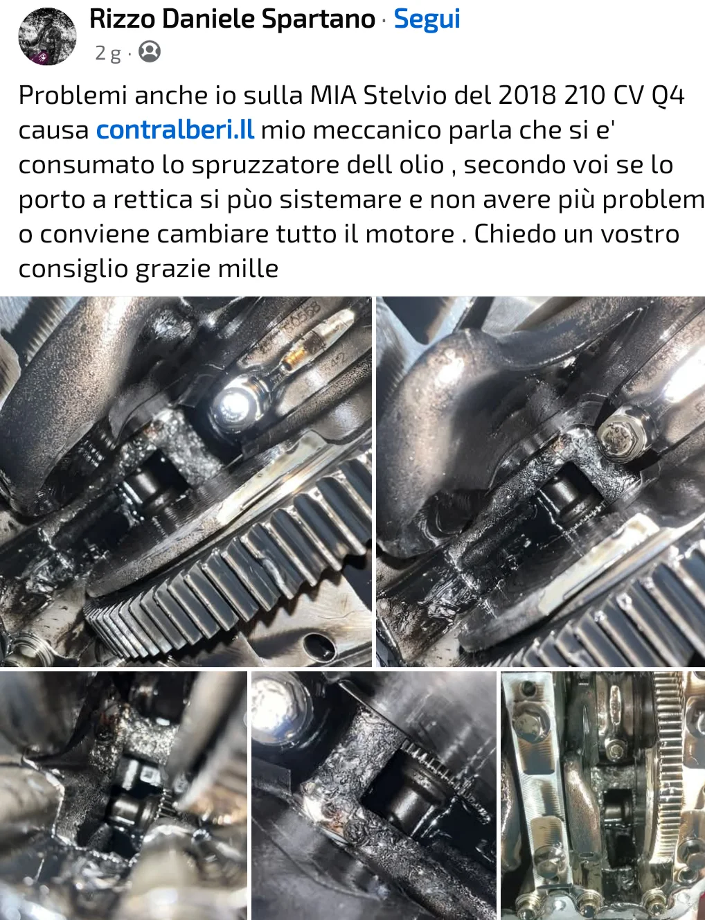 Ora tu mi spieghi come TECNICAMENTE sia possibile che si rompano i contralberi che e' un componente passivo a fronte dell'utilizzo dell'auto. Ammesso e non concesso che sia possibile per la CP4 (ma anche li....) il proliferare di alghe, ma anche il gommino del pescante e' frutto di una progettazione fatta a c...o di cane non tenendo conto delle rigenerazioni, e' stata presa una pompa olio che andava bene sui motori precedenti e messa di sana pianta su un euro 6. Ad ogni modo voglio capire come ti si sono rotti a te i contralberi visto che non facevi pochi km a settimana e quindi non ricadi nella casistica che tu stesso hai citato. Ti dico in anticipo la mia impressione. La Giulia e lo Stelvio sono usciti nel 2016 / 2017 quindi 8 anni fa ; tenendo conto una percorrenza media di 15/20k km anno siamo intorno ad auto con 160k km che guarda caso e' la base di partenza a cui partono nella maggiornaza dei casi. Mi aspetto che mano mano che tutti arrivino a quel kilometraggio ci sia un aumento di questi casi